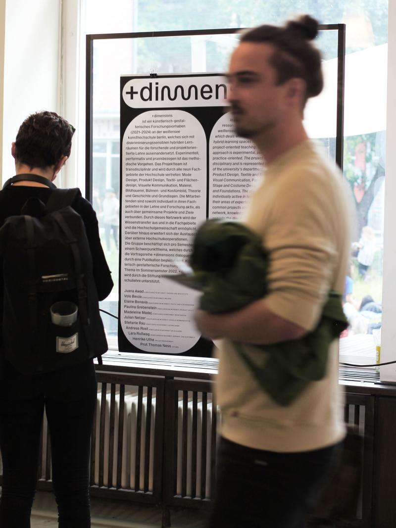 Zum Rundgang 2022 der weißensee kunsthochschule berlin ist erstmalig auch +dimensions mit dabei. Im Ergeschoss im Raum D 0.06 gibt es einen Stand, der über das Projekt und alle Teilnehmenden informiert. Darüber hinaus haben Besucher:innen vor Ort die Möglichkeit, sich die Mitschnitte der +dimensions dialogues Vortragsreihe „Blurred Territories“ anzuschauen oder anzuhören. Der Rundgang ist außerdem der Webseitenlaunch des Projektes. Auf der Webseite gibt es neben Informationen zu den Projektmitwirkenden und ihren Forschungsthemen, auch prozessuale Einblicke und Hinweise zu diversen gemeinsame Themen, Veranstaltungen und Publikationen.